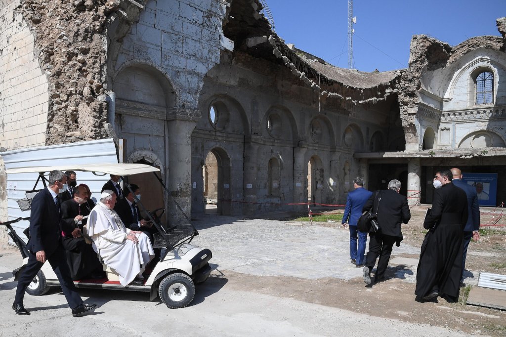 Papa ziyareti esnasında DAEŞ tarafından yıkılmış olan kiliselerden birinde incelemelerden bulunduktan sonra şunları söyledi, ‘‘Ne kadar acımasızca. Medeniyetin beşiği olan bu ülkenin eski ibadethanelerinin yıkılmasıyla, bu denli barbarca bir müdahaleye maruz kalmaması gerekirdi’’. Tabi Papa Francis’in bu söylemi ile birlikte, ABD’nin 2003 yılında İngilizler ile birlikte Irak’ı işgal etmesi neticesinde; Emevi, Abbasi ve Osmanlı dönemlerine ait çok sayıda cami ve medresenin kullanılamaz hale gelmiş olmasını, insan aklına getirmeden edemiyor. Bizim aklımıza gelse de Papa’nın pek aklına gelmediği, ziyareti sırasında hiçbir Sünni merkezi ziyaret etmemesi veya birçok Sünni, hem ABD hem de DAEŞ tarafından öldürülmüş olmasına rağmen, buna dair hiçbir söylemde bulunmamış olmasından anlaşılabiliyor. Sembolikte olsa bir Sünni lider ile de görüşülebilirdi ancak onu zaten 2017’de Mısır’da yapmıştı, bu ziyaret ise o ziyaretler silsilesinin bir devamı niteliğindeydi. Yenileri de gelecektir. Ayrıca Papa’nın, ziyareti esnasında kullandığı ‘‘kimse öldürülmesin’’ gibi söylemler de kendisini biraz fazla gülünç duruma sokmasına sebebiyet verdi. Irak’ın, Suriye’nin bu hâle gelmiş olmasının sebebi kendileri değil miydi?